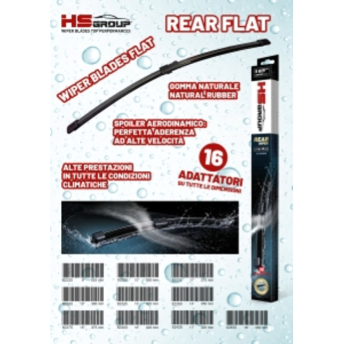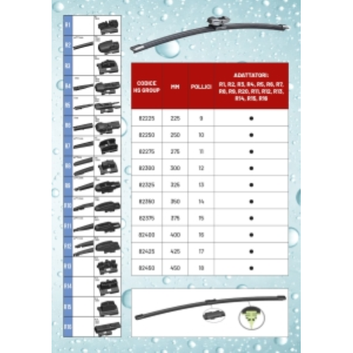 SPAZZOLA TERGICRISTALLO POSTERIORE 225MM 9'' COMPLETA DI 16 ADATTATORI